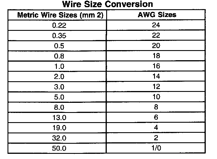 ^ The wire must be of equal or greater size than the original (except fusible link).