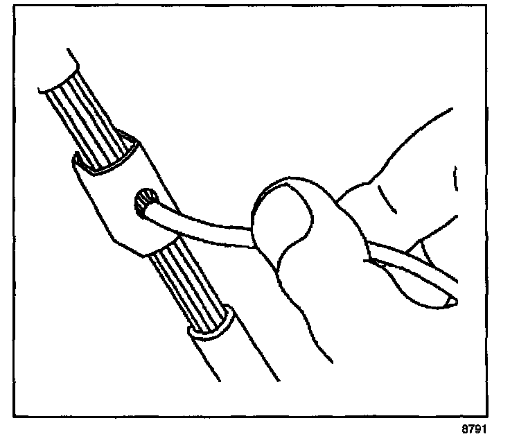 ^ Strip approximately 7.5 mm (5/16 in) of insulation from each wire to be spliced.