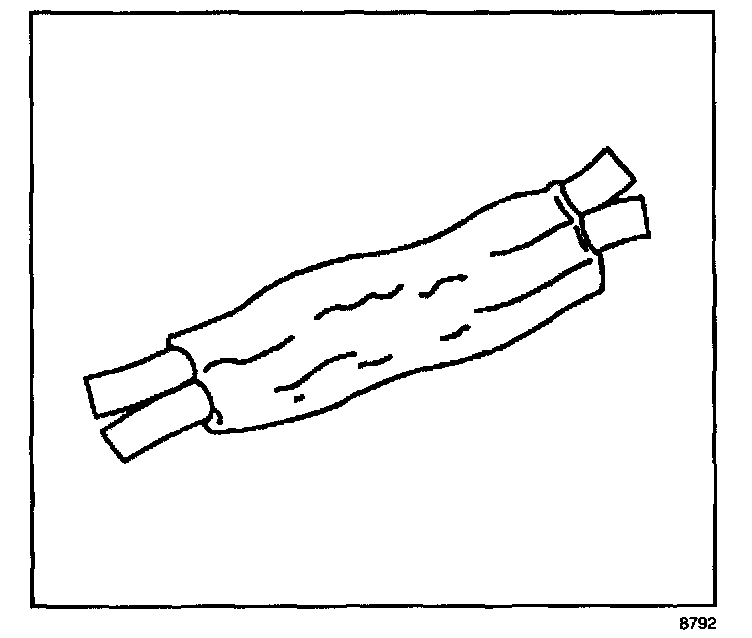 ^ Ensure that each splice is at least 40 mm (1.5 in) away from other splices, harness branches and connectors. This helps prevent moisture from bridging adjacent splices and causing damage.