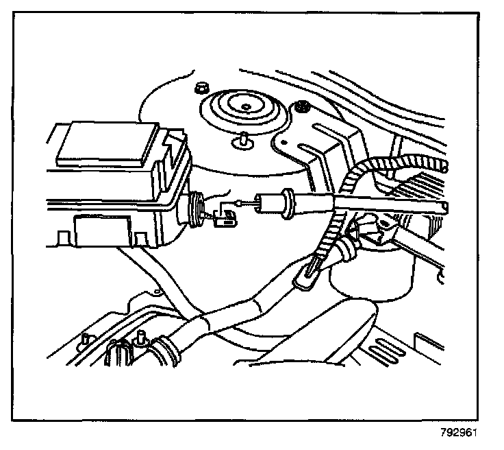 6. Remove the cruise control cable from the retainer clip on the engine.