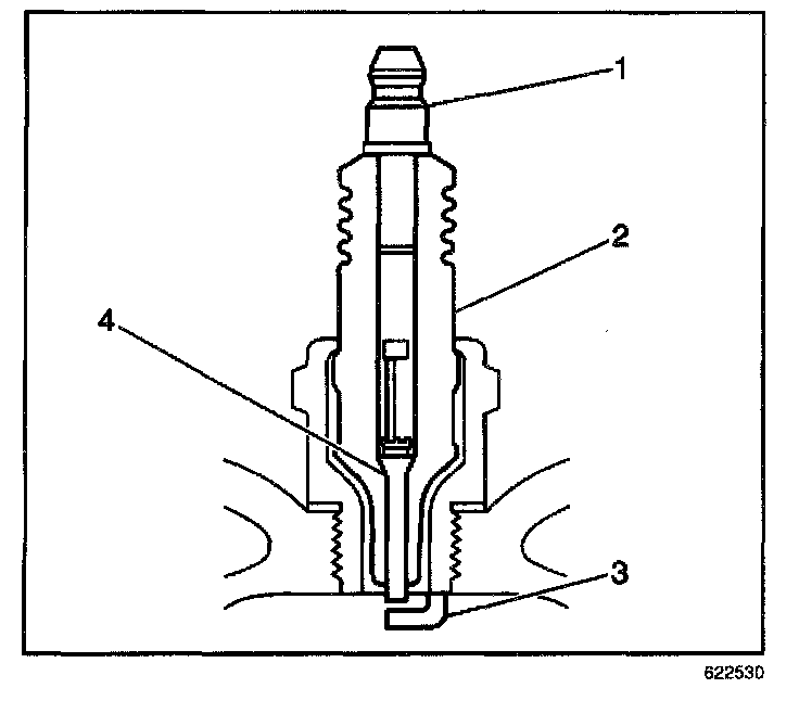 - Inspect for the correct spark plug torque. Refer to Ignition System Specifications. Insufficient torque can prevent correct spark plug operation. An over torqued spark plug, causes the insulator (2) to crack.