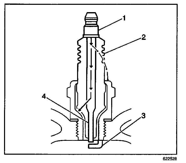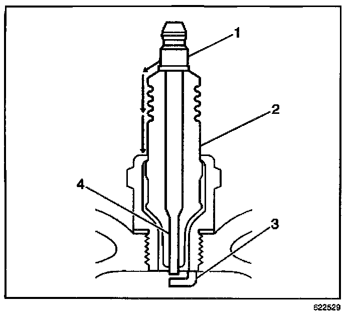 - Inspect for a broken, worn, or loose center electrode (4) by shaking the spark plug.