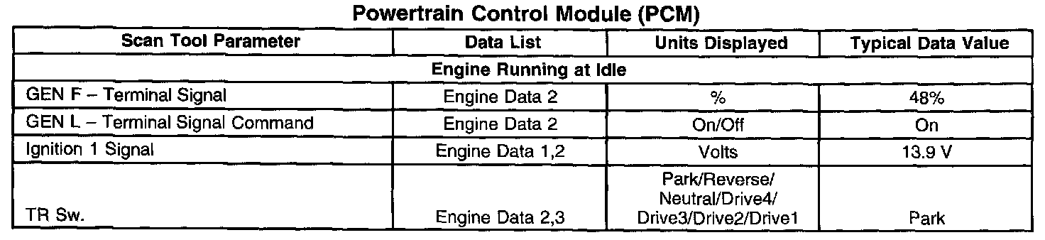 Scan Tool Data List - Powertrain Control Module (PCM)