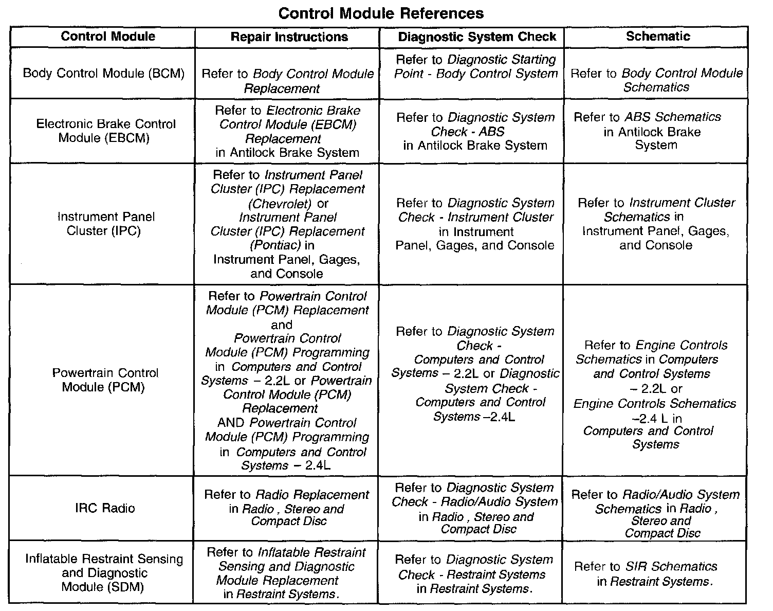 Control Module References