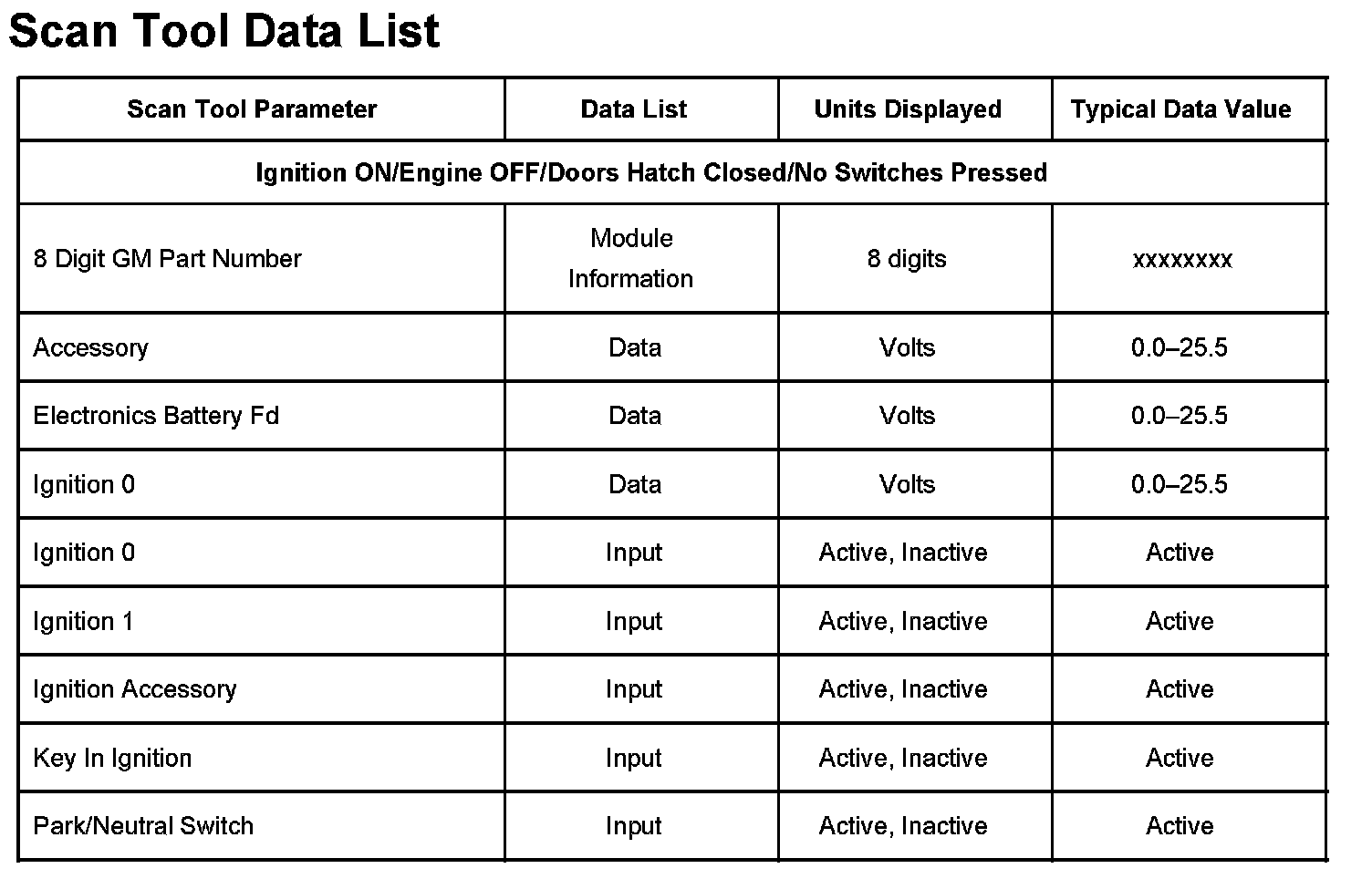 Scan Tool Data List: