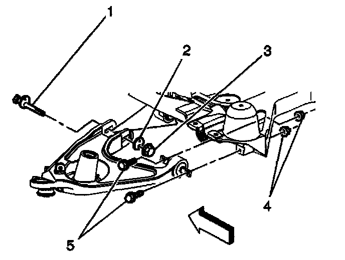 2. Loosen rear lower control arm mounting nuts (3, 4).
