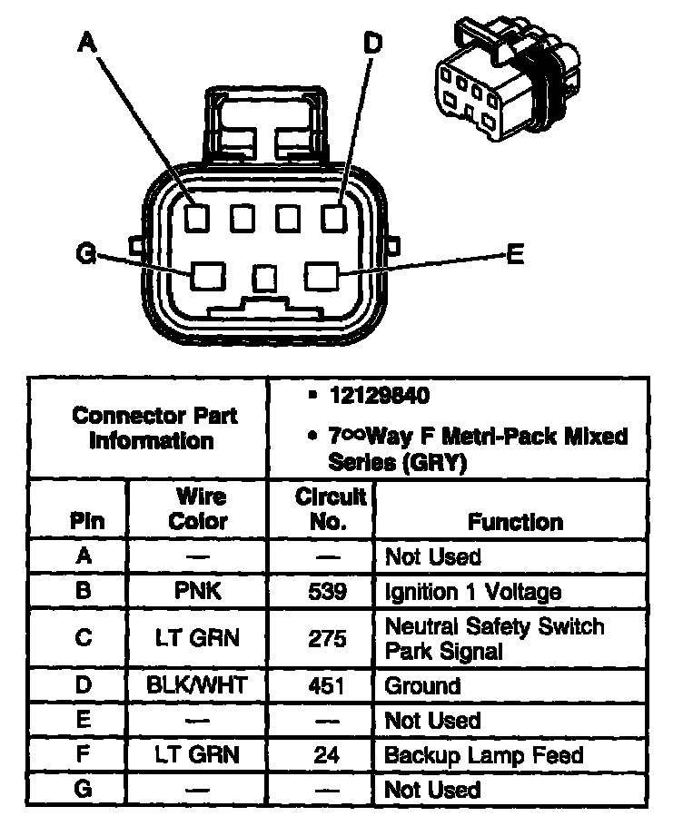 Transmission Range Switch C1 Connector, Wiring Harness Side: