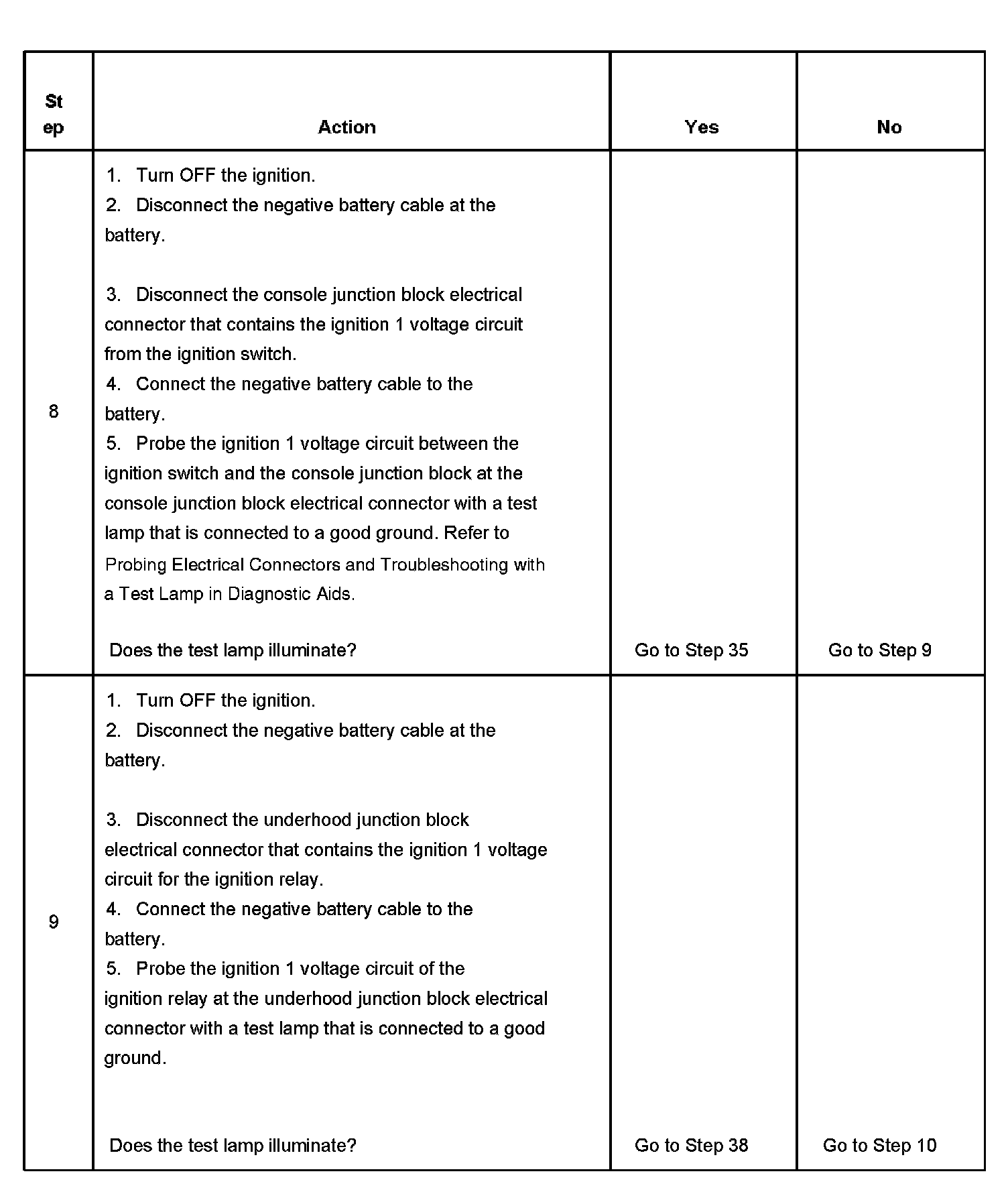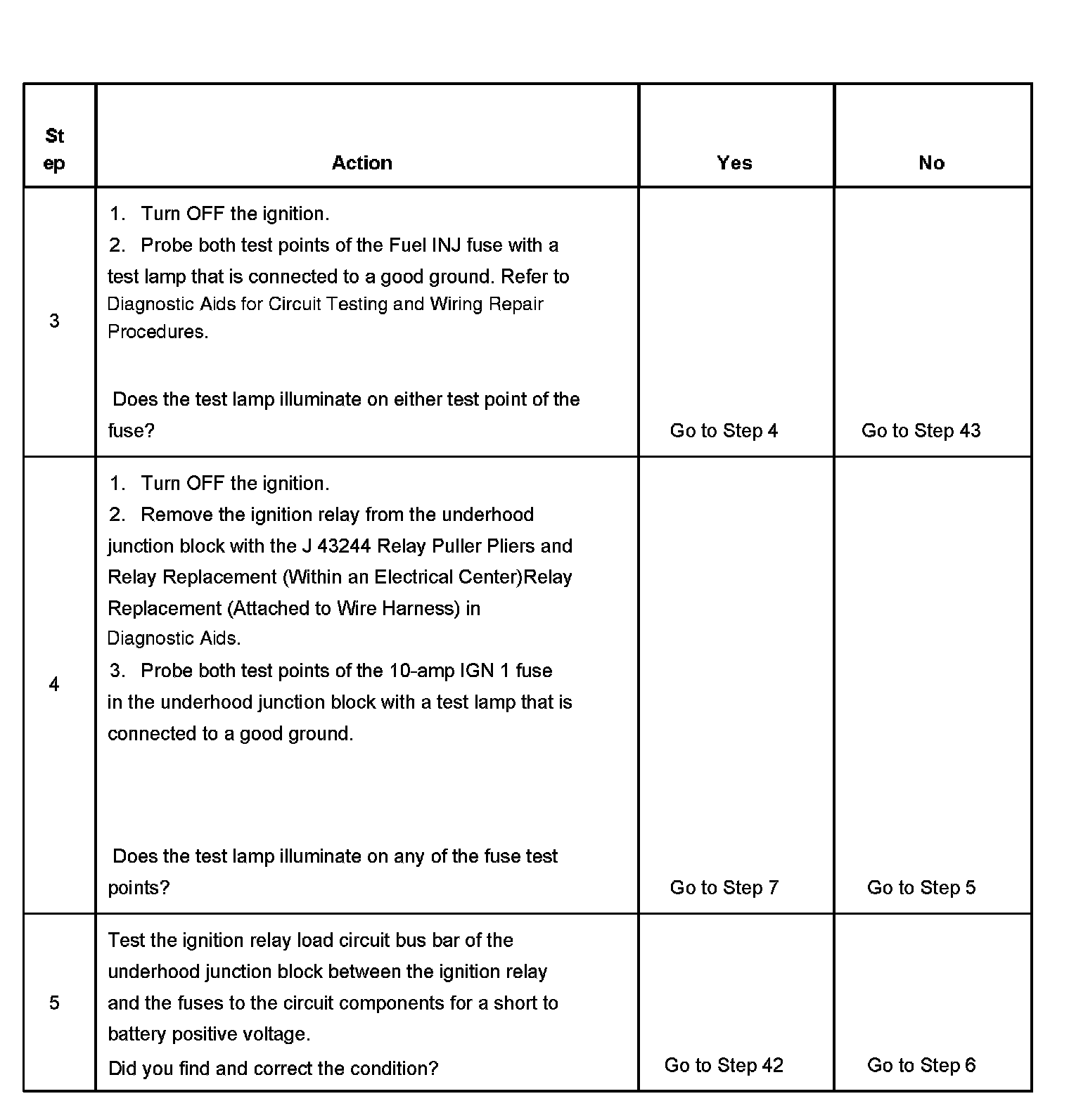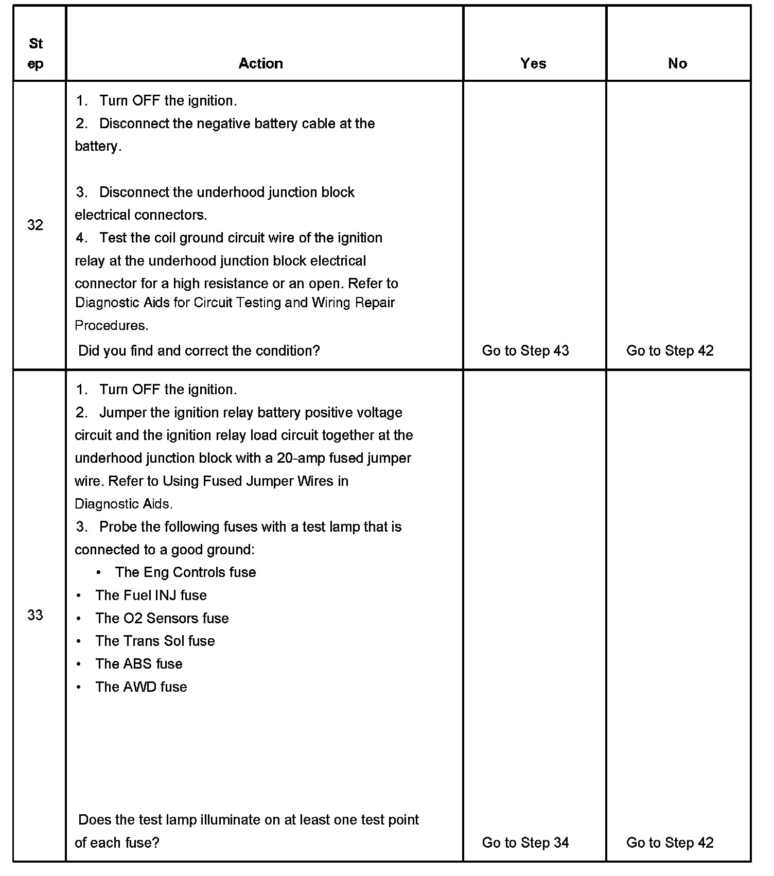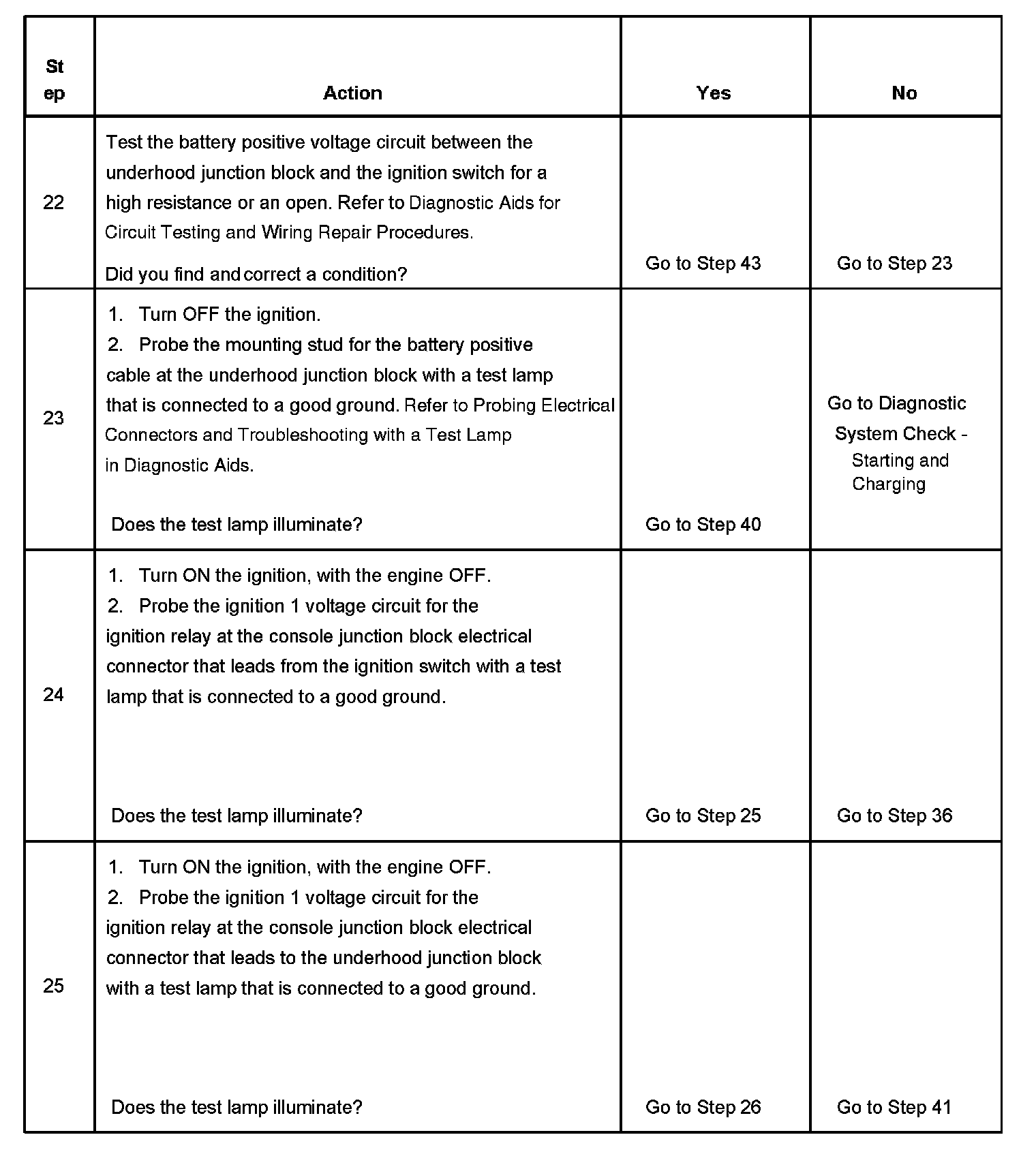 The ignition relay table assumes that the vehicle battery is fully charged.