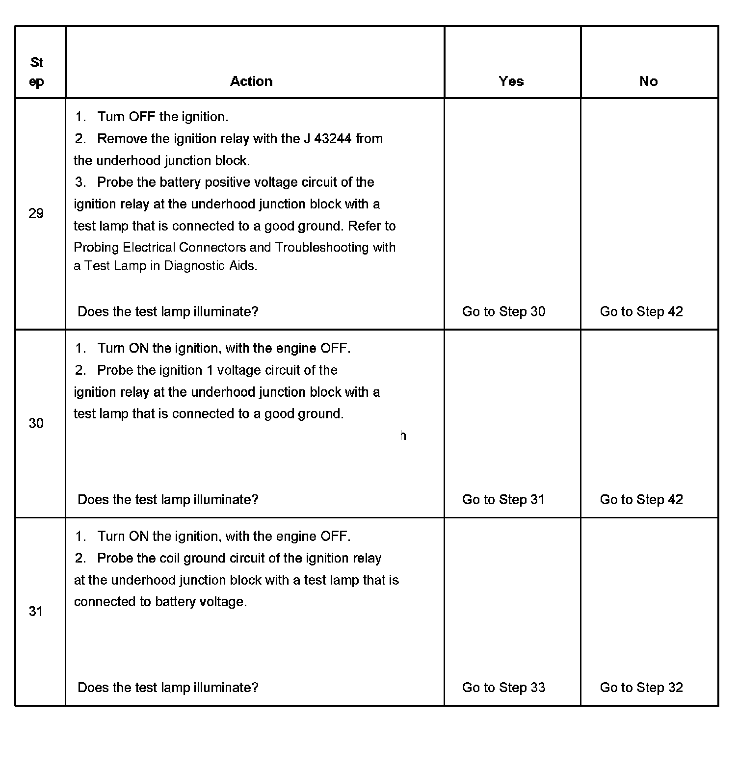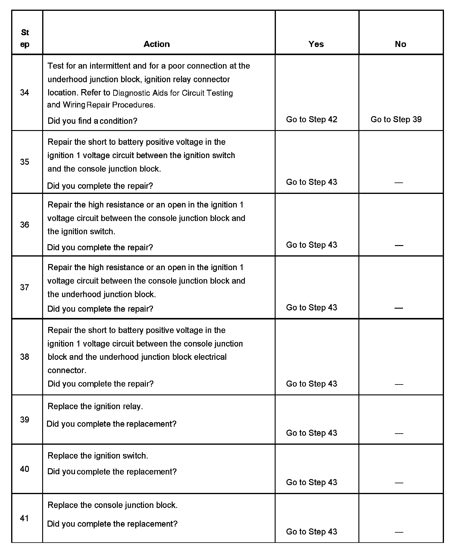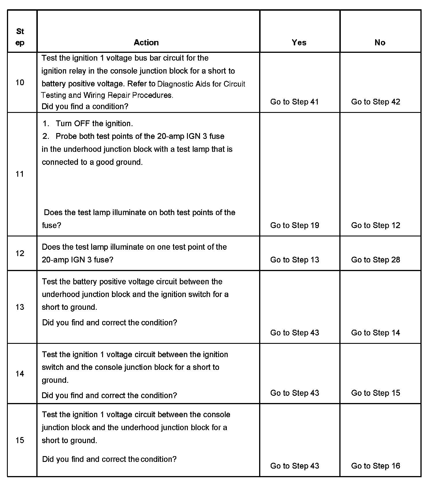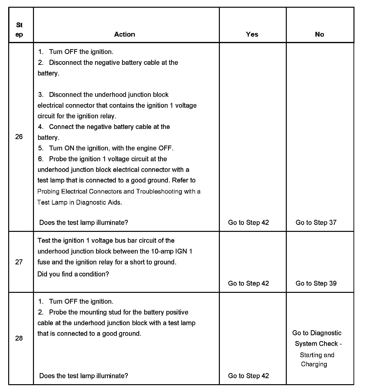 The ignition relay table assumes that the vehicle battery is fully charged.
