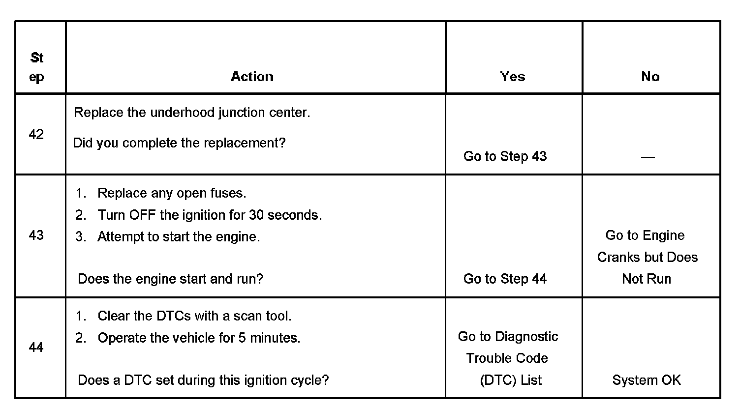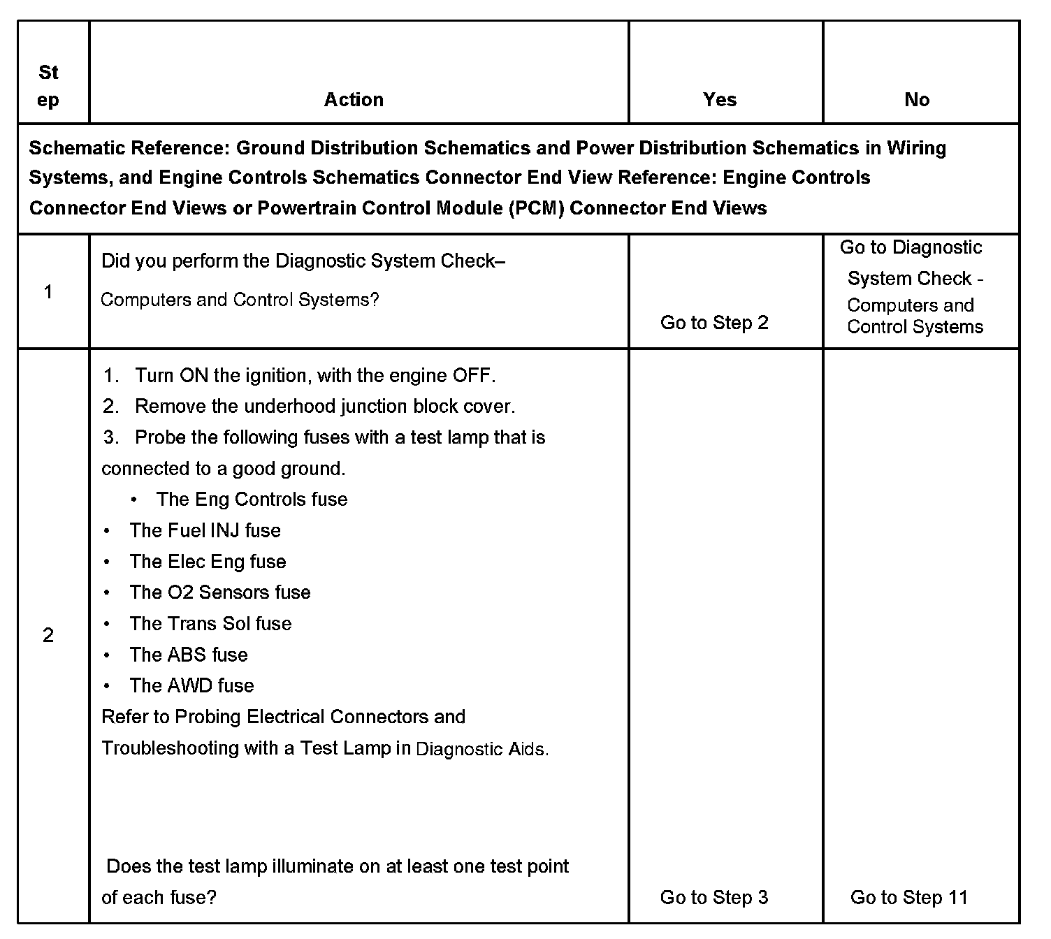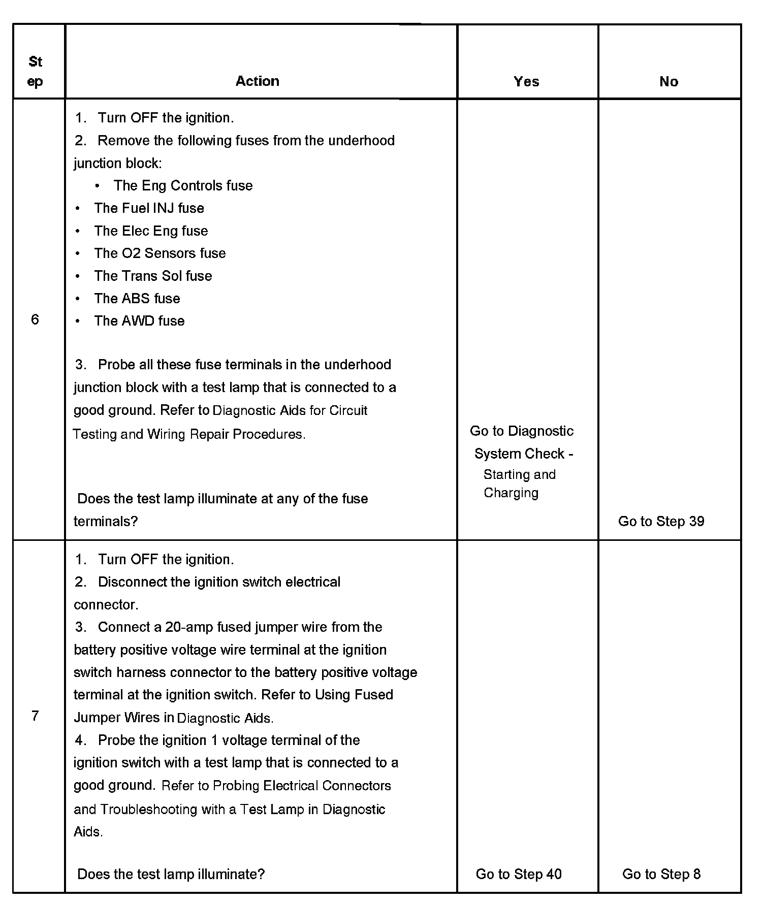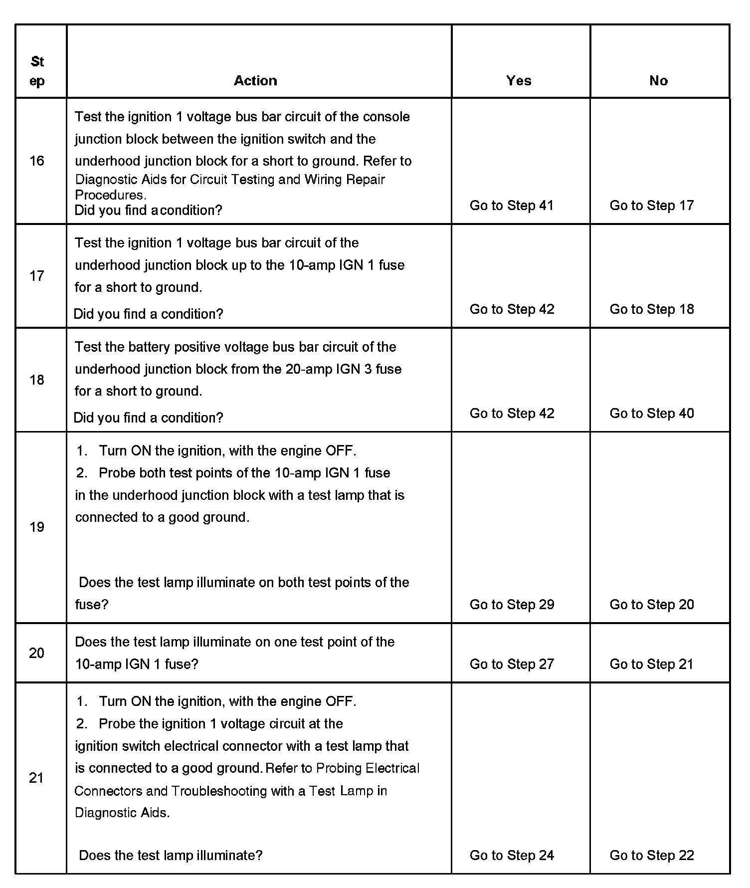 The ignition relay table assumes that the vehicle battery is fully charged.
