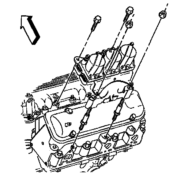 5. Remove the fasteners securing the ignition control module assembly to the engine.