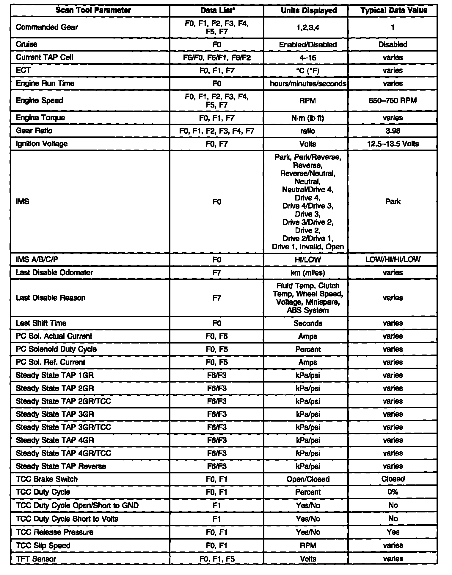 Transmission Scan Tool Data List Part 2 Of 3: