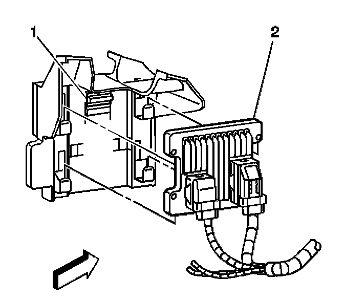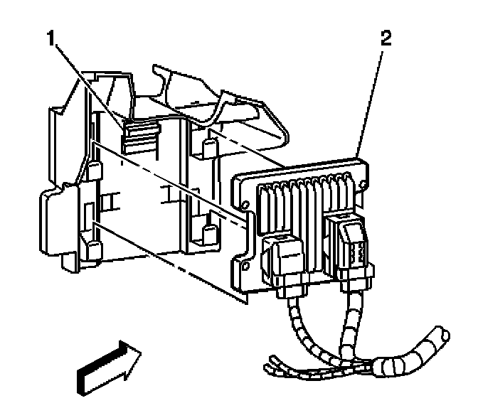 1. Slide the PCM into the PCM bracket. The retaining tab (1) will lock in place.