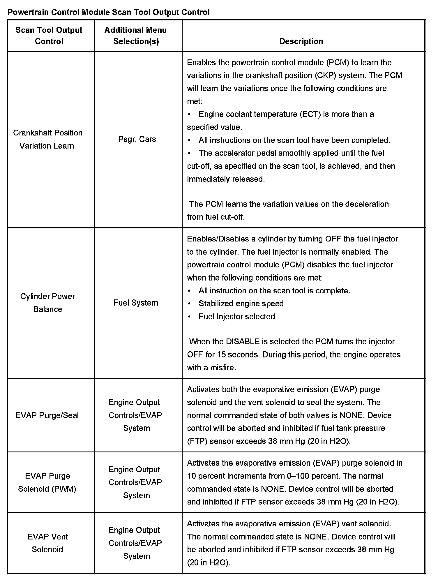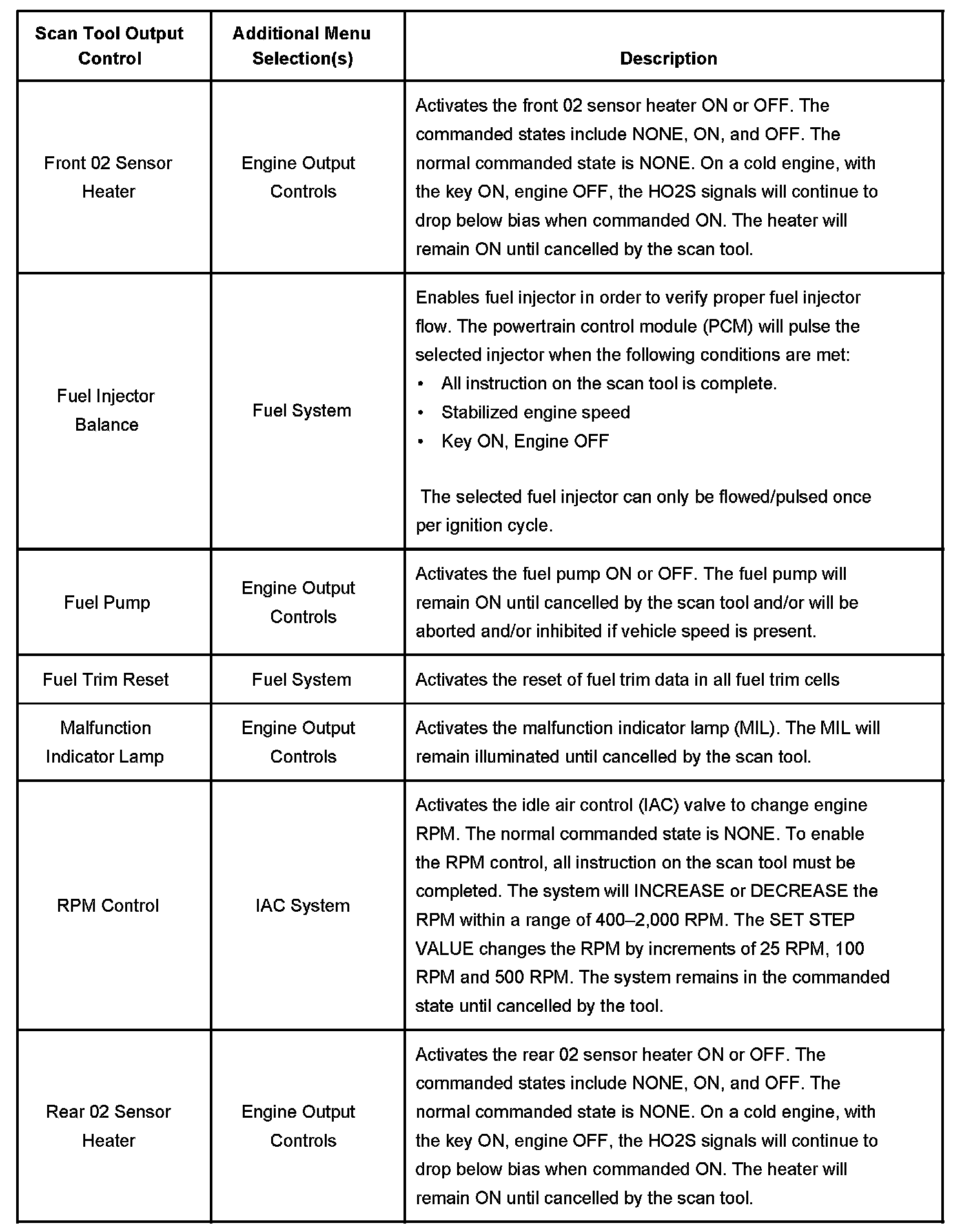Scan Tool Output Controls