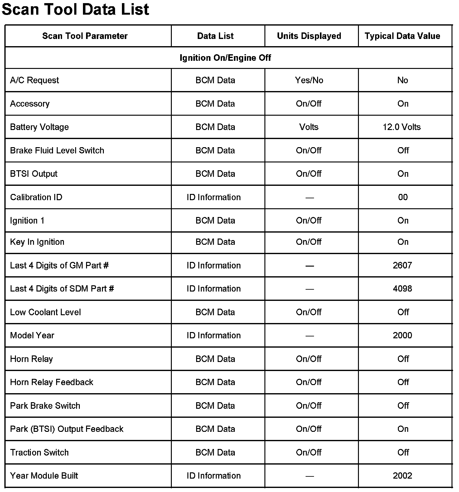 Scan Tool Data List