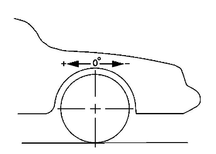 Caster is the tilting of the uppermost point of the steering axis either forward or backward, when viewed from the side of the vehicle. A backward tilt is positive (+) and a forward tilt is negative (-). Caster influences directional control of the steering but does not affect the tire wear. Caster is affected by the vehicle height, therefore it is important to keep the body at its designed height. Overloading the vehicle or a weak or sagging rear spring will affect caster. When the rear of the vehicle is lower than its designated trim height, the front suspension moves to a more positive caster. If the rear of the vehicle is higher than its designated trim height, the front suspension moves to a less positive caster.