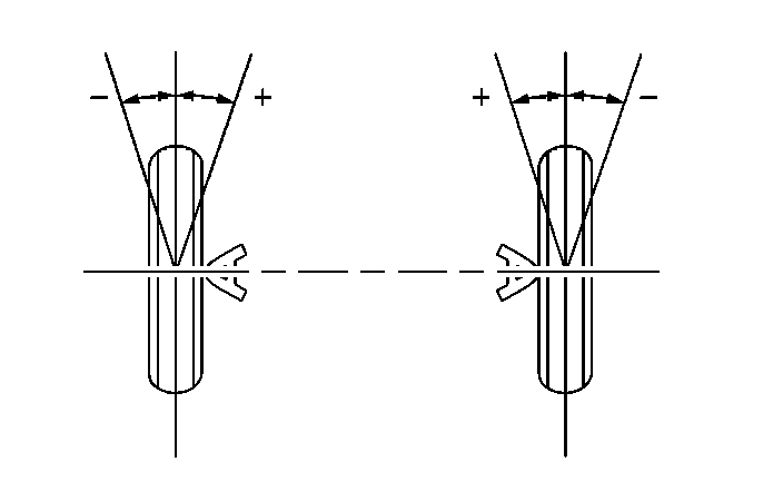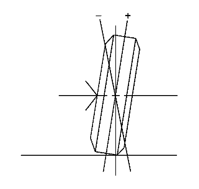 Camber is the tilting of the wheels from the vertical when viewed from the front of the vehicle. When the wheels tilt outward at the top, the camber is positive (+). When the wheel tilts inward at the top, the camber is negative (-). The amount of tilt is measured in degrees from the vertical. Camber settings influence the directional control and the tire wear.