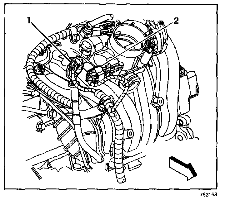 2. Disconnect the throttle position (TP) sensor harness connector (2).