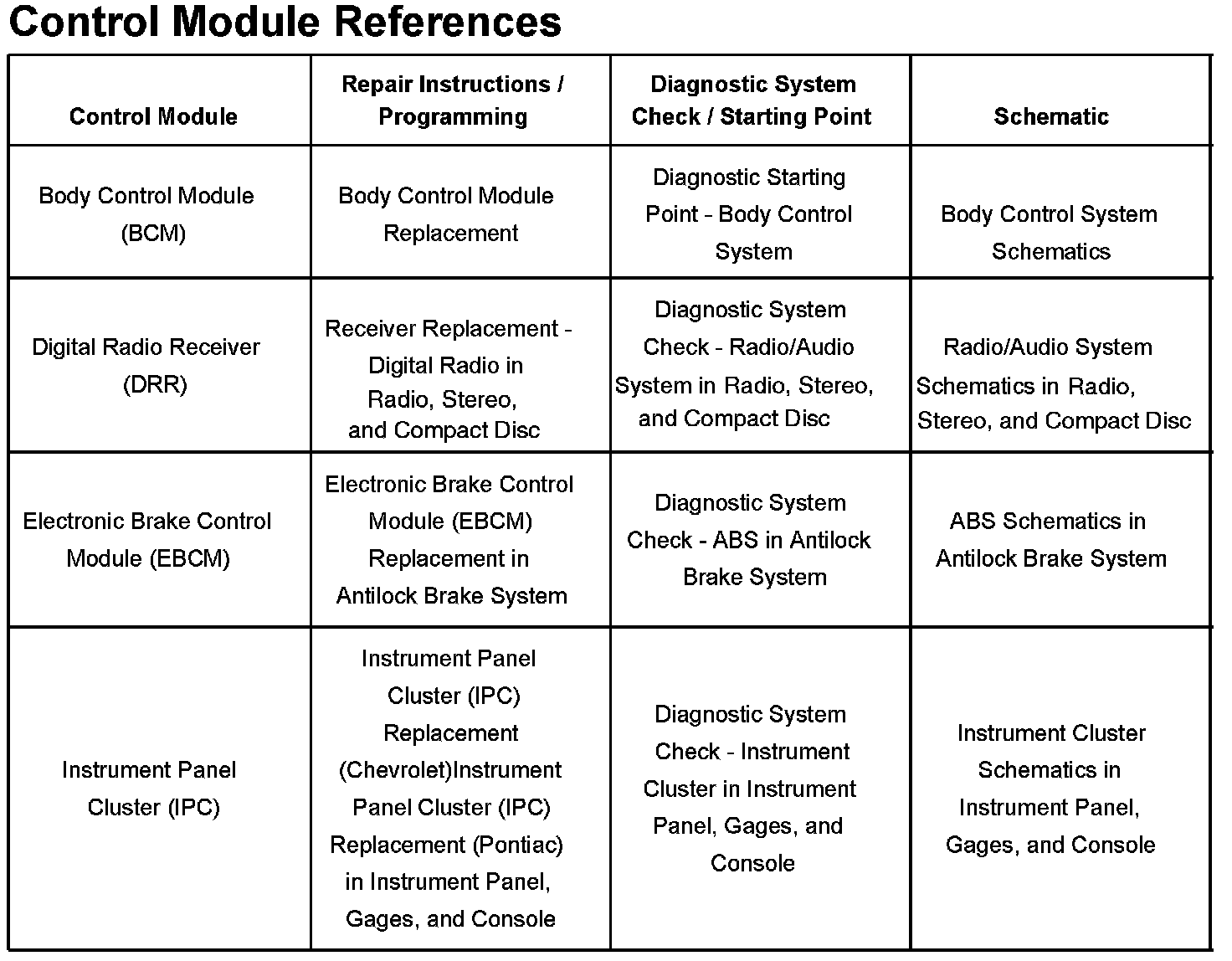 Control Module References Part 1: