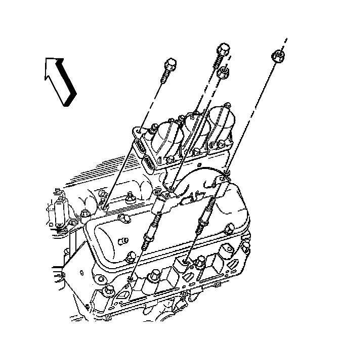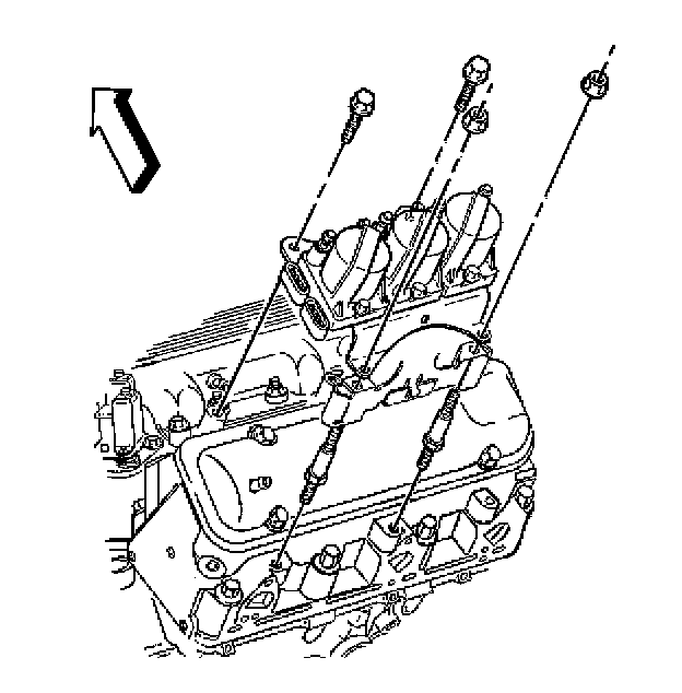 5. Remove the fasteners securing the ignition control module assembly to the engine.