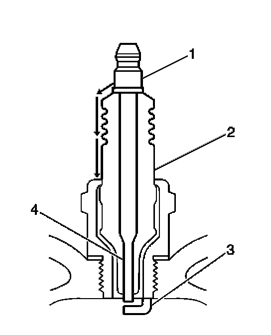 - Inspect for the correct spark plug torque. Refer to Ignition System Specifications. Insufficient torque can prevent correct spark plug operation. An over-torqued spark plug causes the insulator (2) to crack.