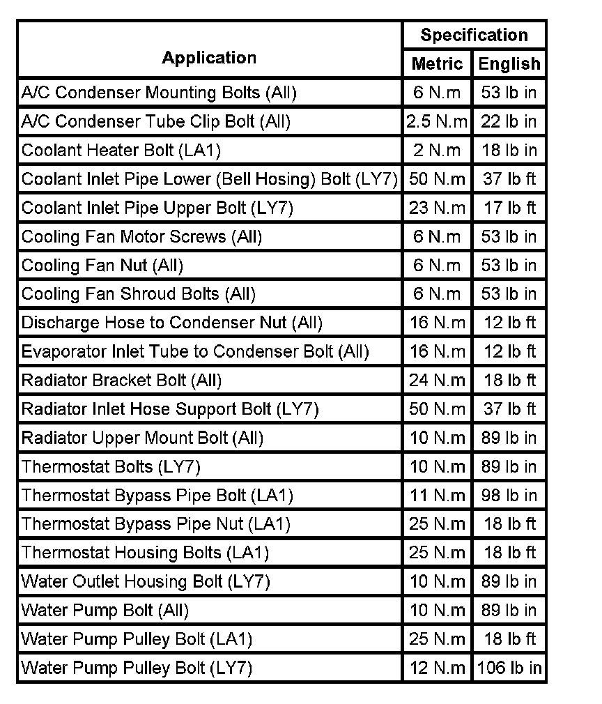 Torque Specifications: