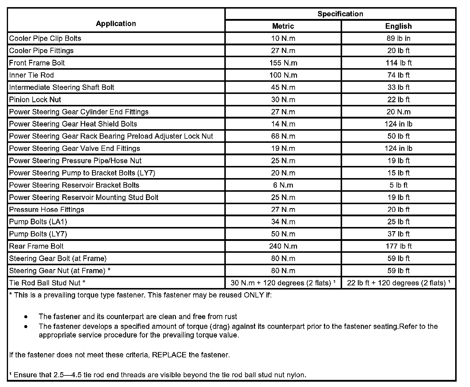 Fastener Tightening Specifications: