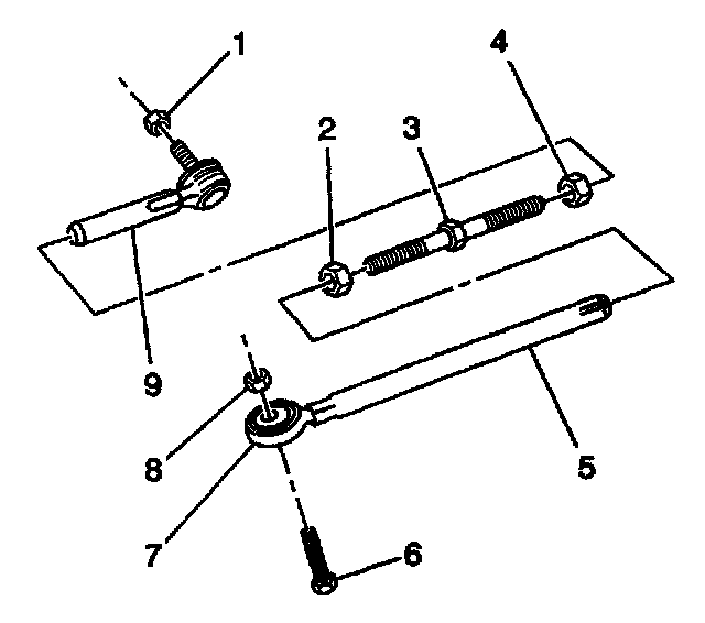 4. Use a wrench on the hexagonal crimped section of the outer adjustment link (9) in order to hold the position of the ball joint.