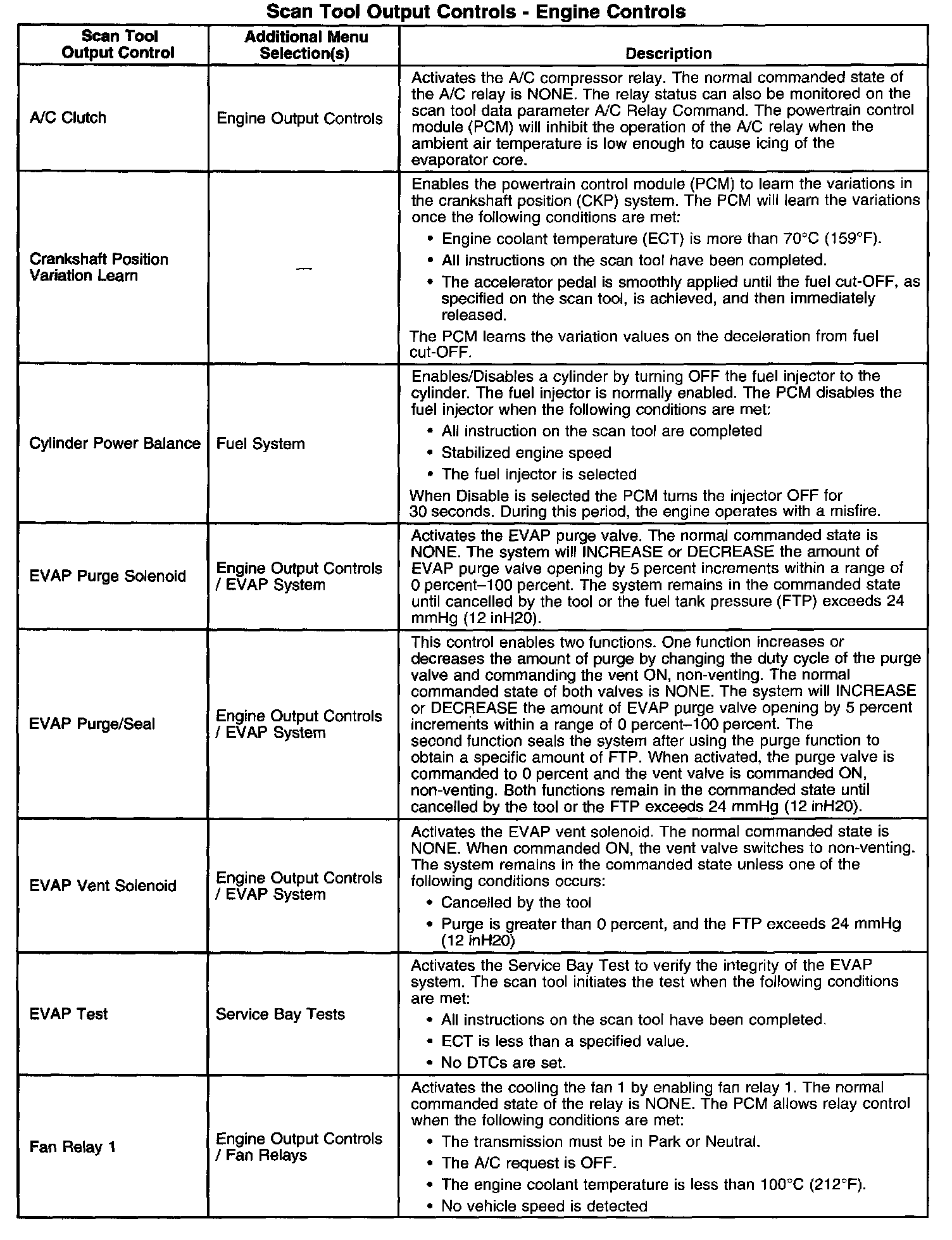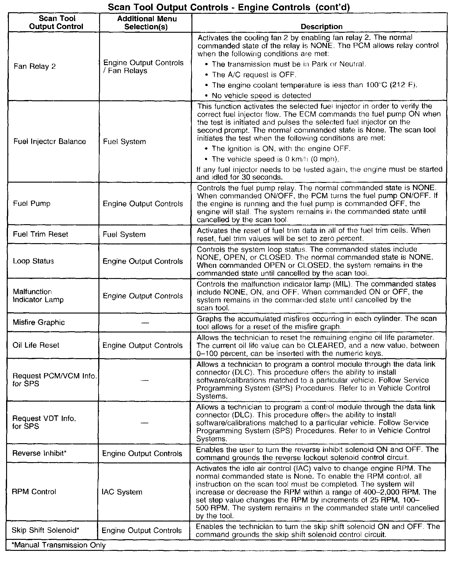 Scan Tool Output Controls - Engine Controls (cont'd):