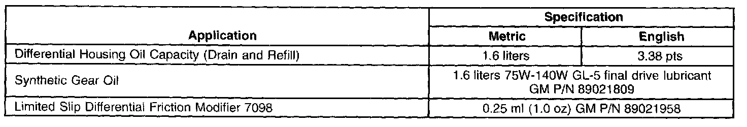 Lubrication Specifications: