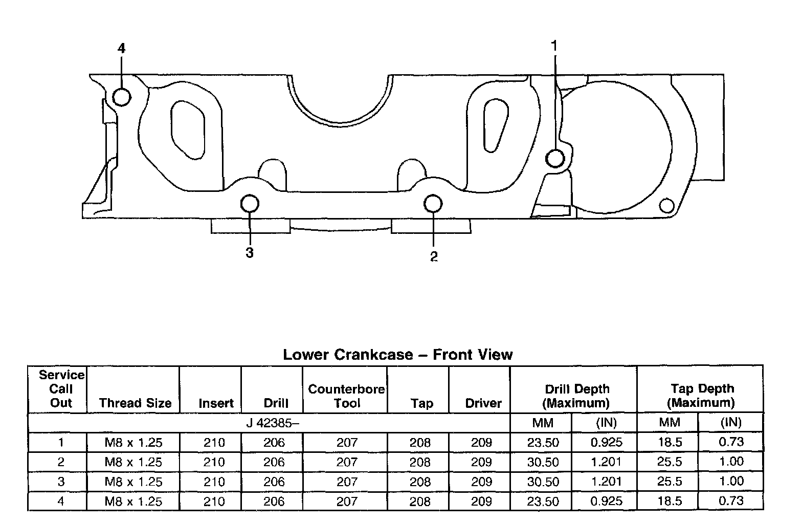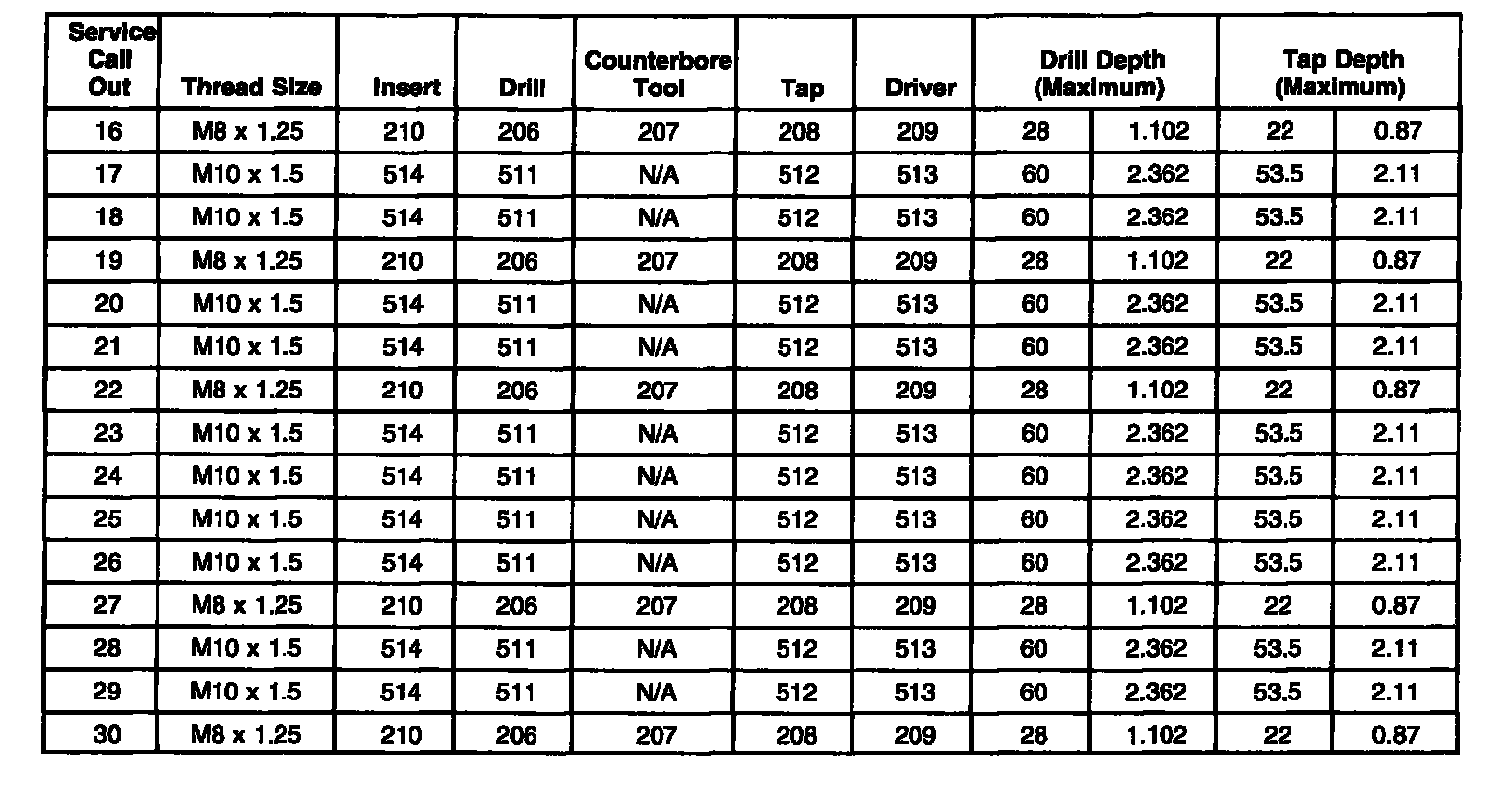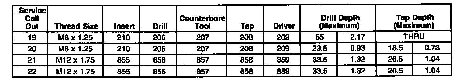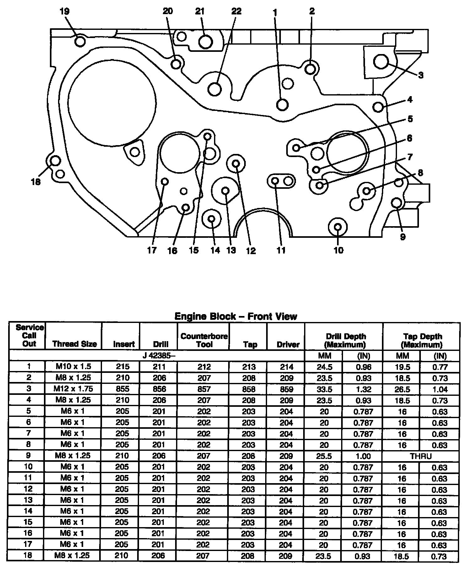 Thread Repair SpecificationsEngine Block - Front View