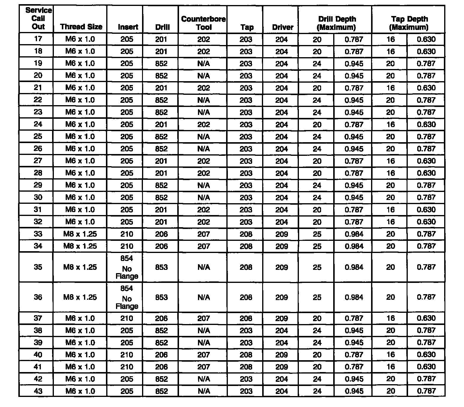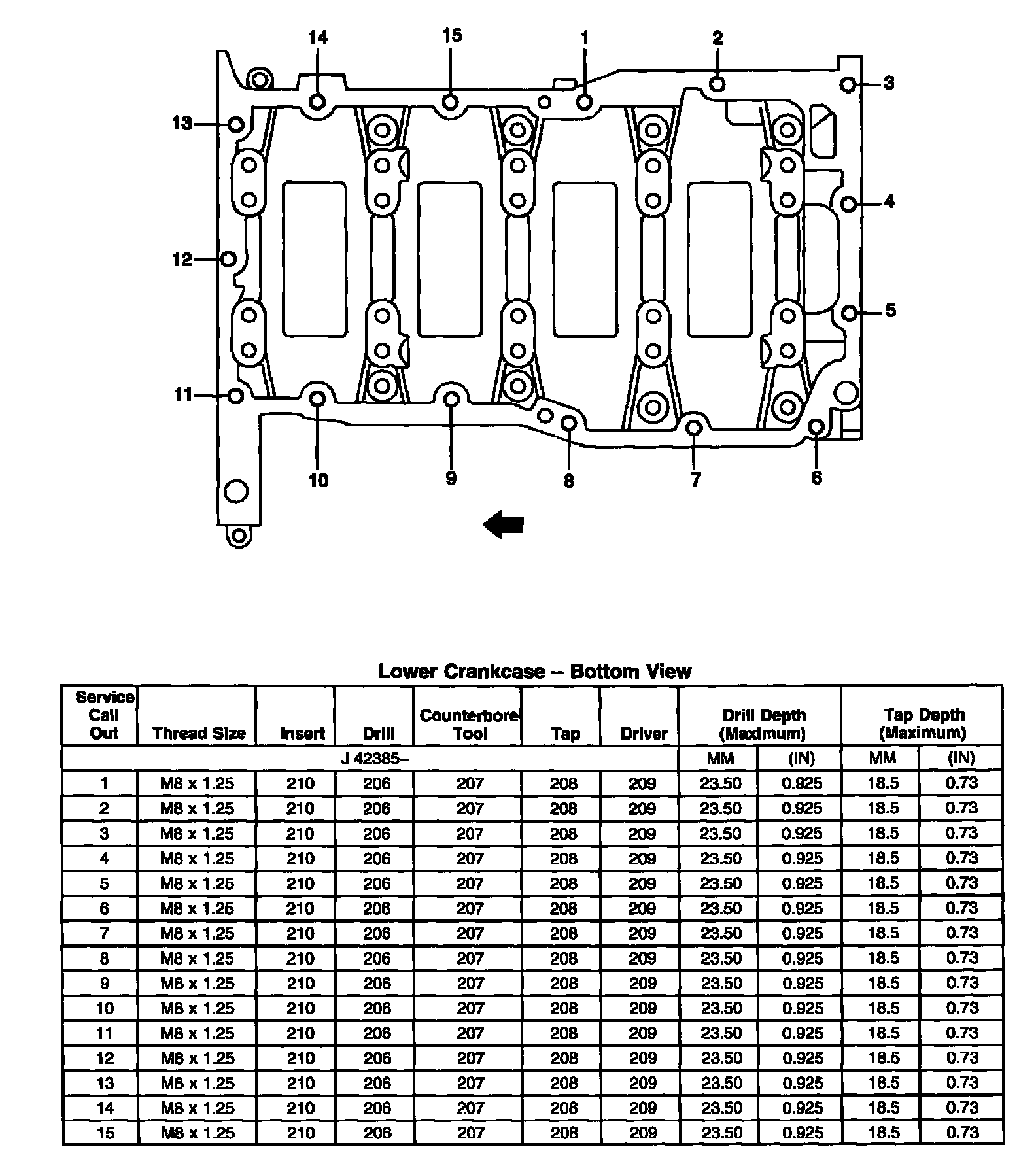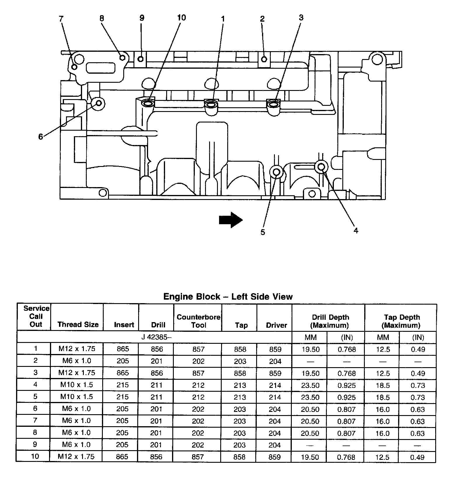 Thread Repair SpecificationsEngine Block - Front View