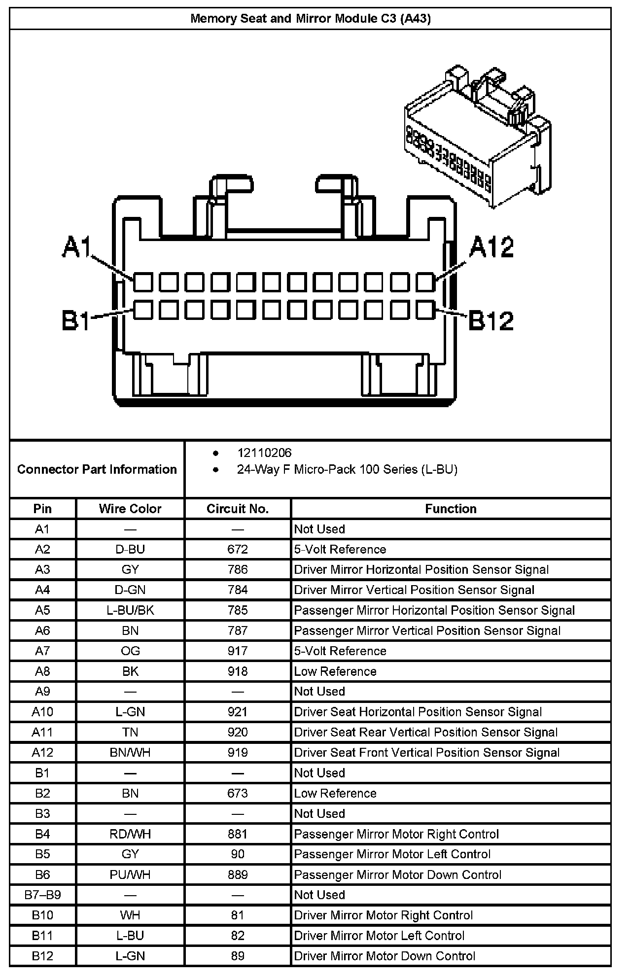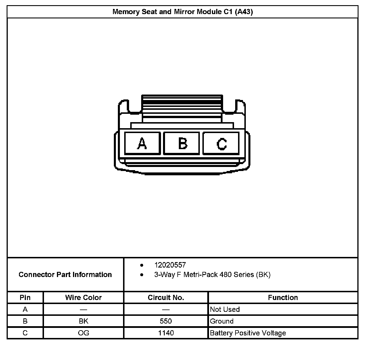 Memory Seat And Mirror Module C3 (With RPO Code A43):