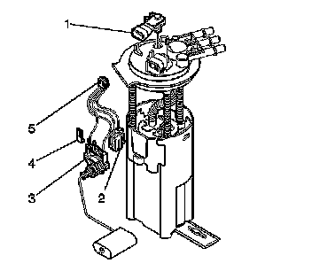 6. Squeeze the locking tangs and remove the fuel level sensor (3) from the modular fuel sender.