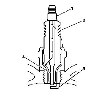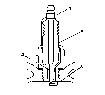 - Inspect for the correct spark plug torque. Refer to Ignition System Specifications. Insufficient torque can prevent correct spark plug operation. An over-torqued spark plug causes the insulator (2) to crack.