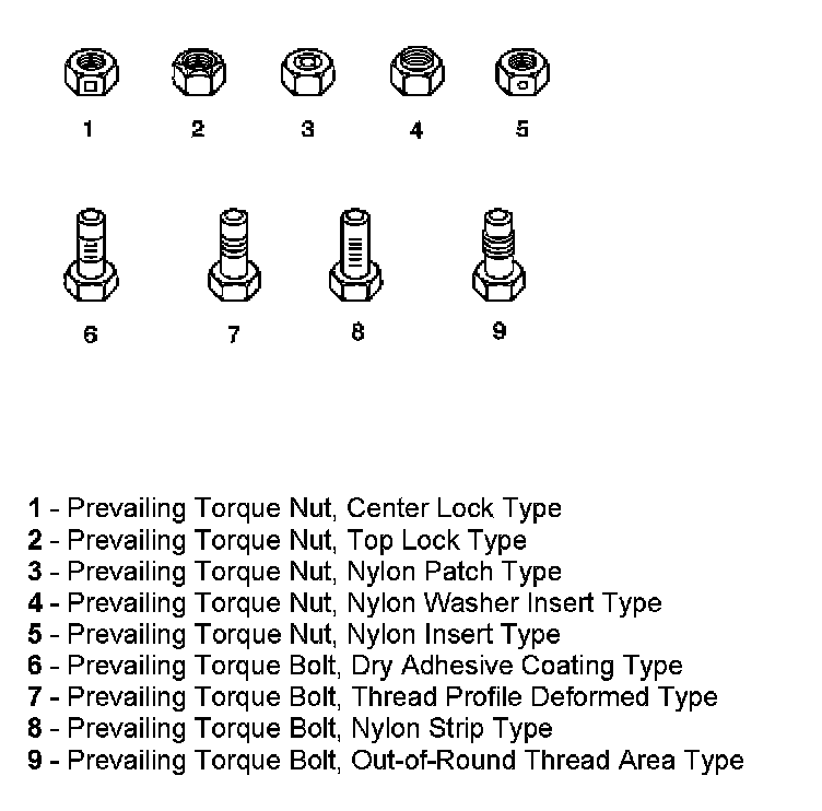 These fasteners accomplish the thread interface by the presence of a thread-locking compound on the fastener threads. Refer to the appropriate repair procedure in order to determine if the fastener may be reused and the applicable thread-locking compound to apply to the fastener.