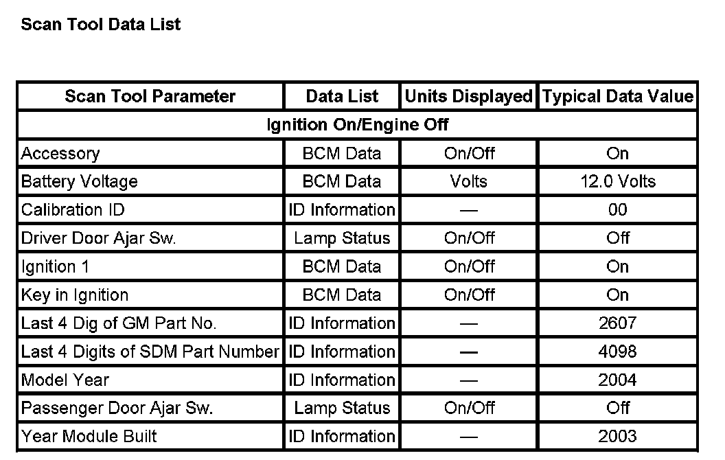 Scan Tool Data List