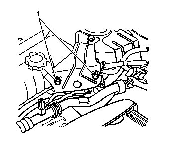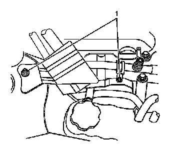 10. Remove the bolt and nut (1) from the cruise control module mounting bracket.