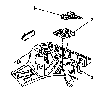 1. Push the PCM (2) into the PCM bracket (3). The retaining tab will lock in place.
