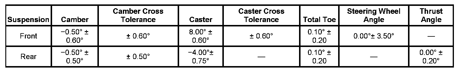 Wheel Alignment Specifications