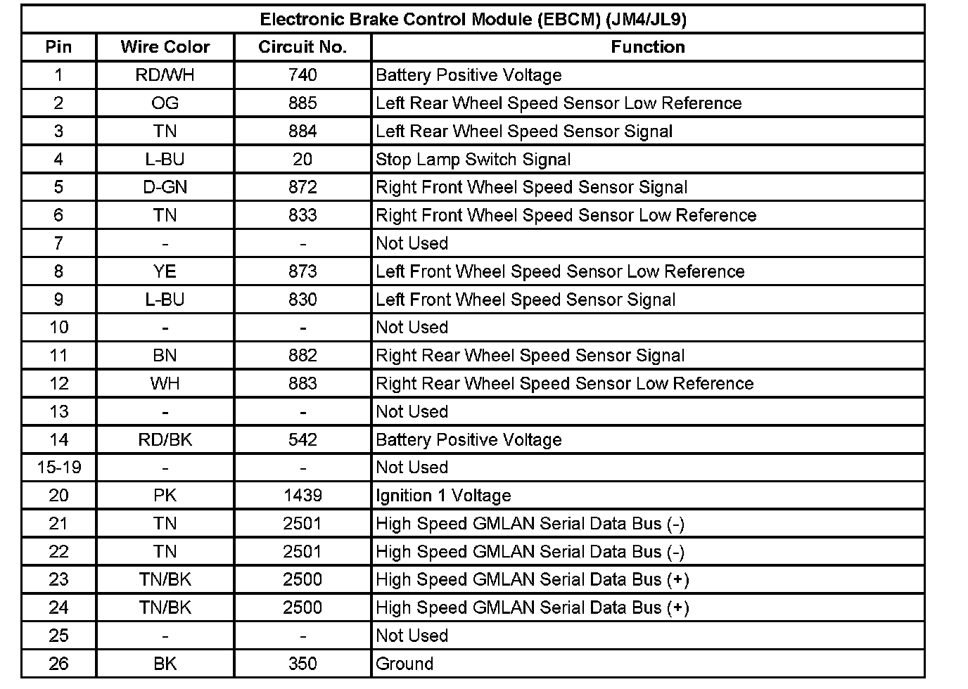 Electronic Brake Control Module (EBCM) (JM4/JL9):