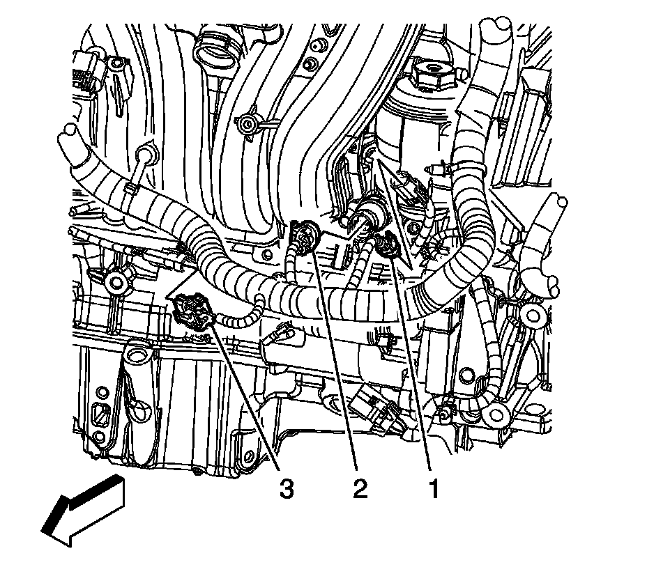 1. Disconnect the knock sensor (KS) electrical connector (3).