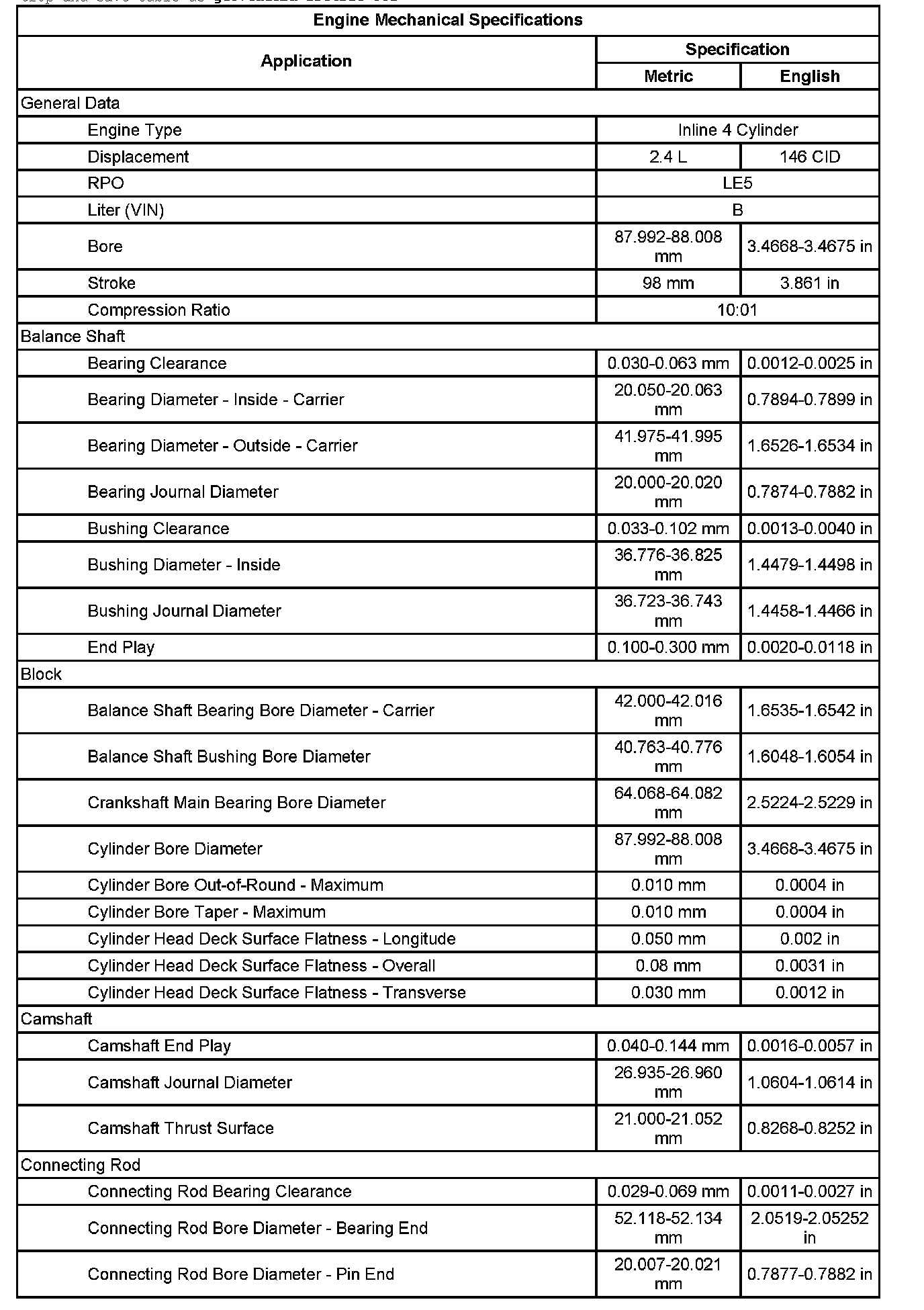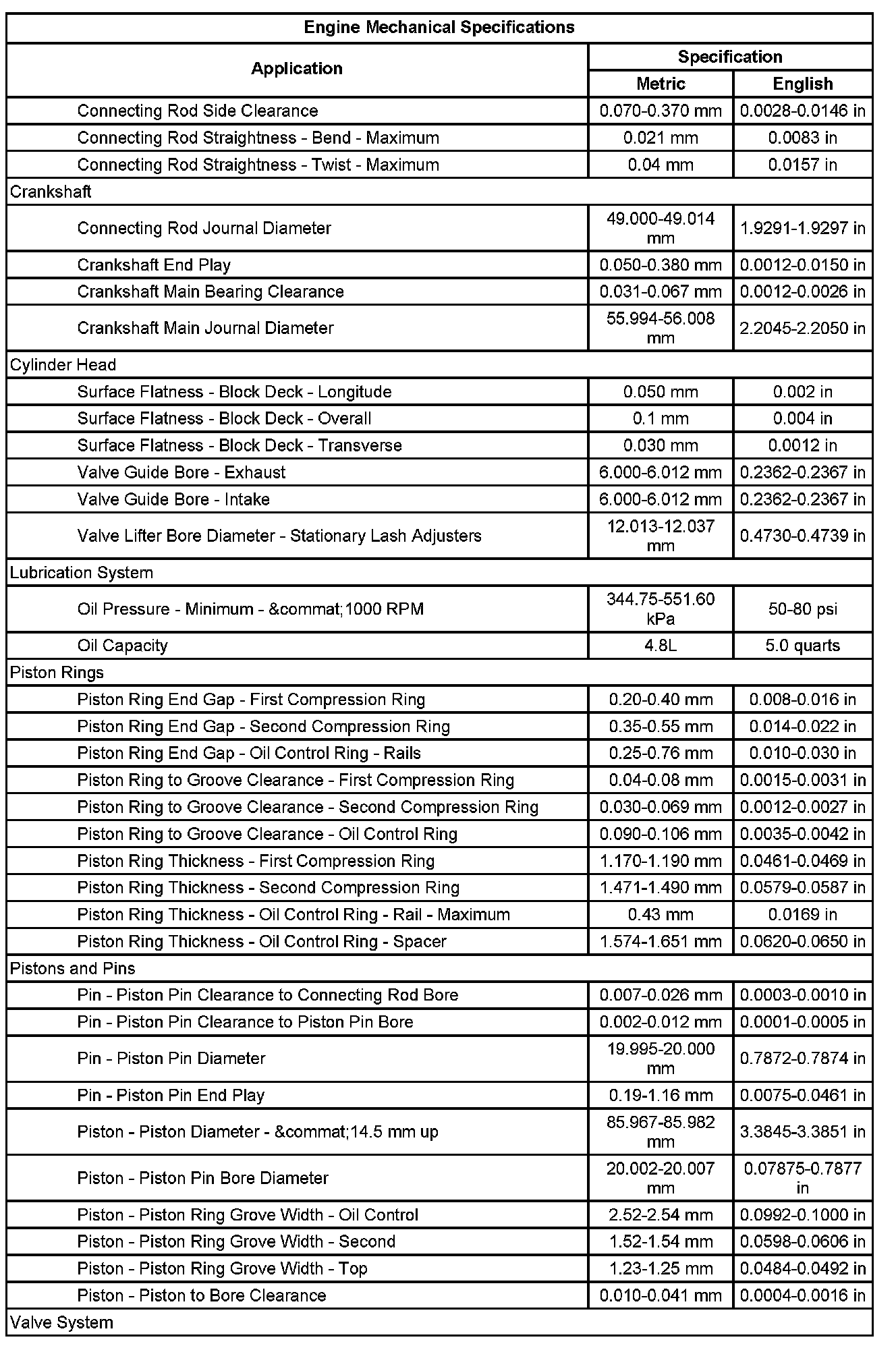 Engine Mechanical Specifications (Part 2):
