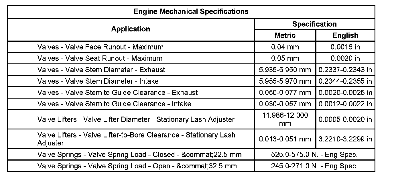 Engine Mechanical Specifications