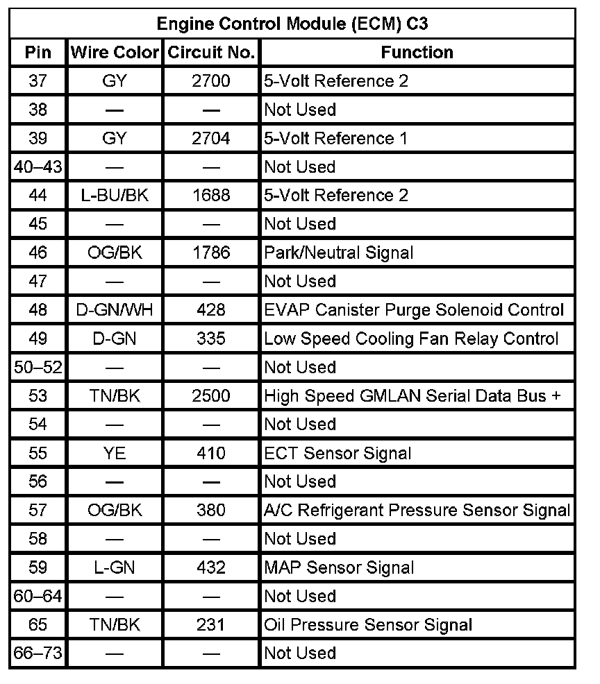 Engine Control Module (ECM) C2 (Pin 65 To 73):