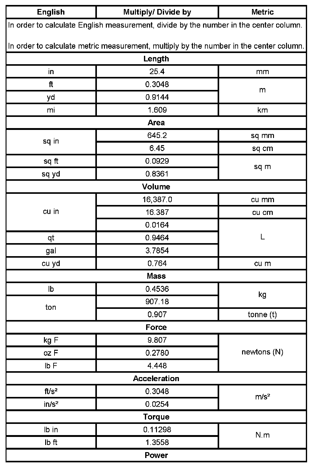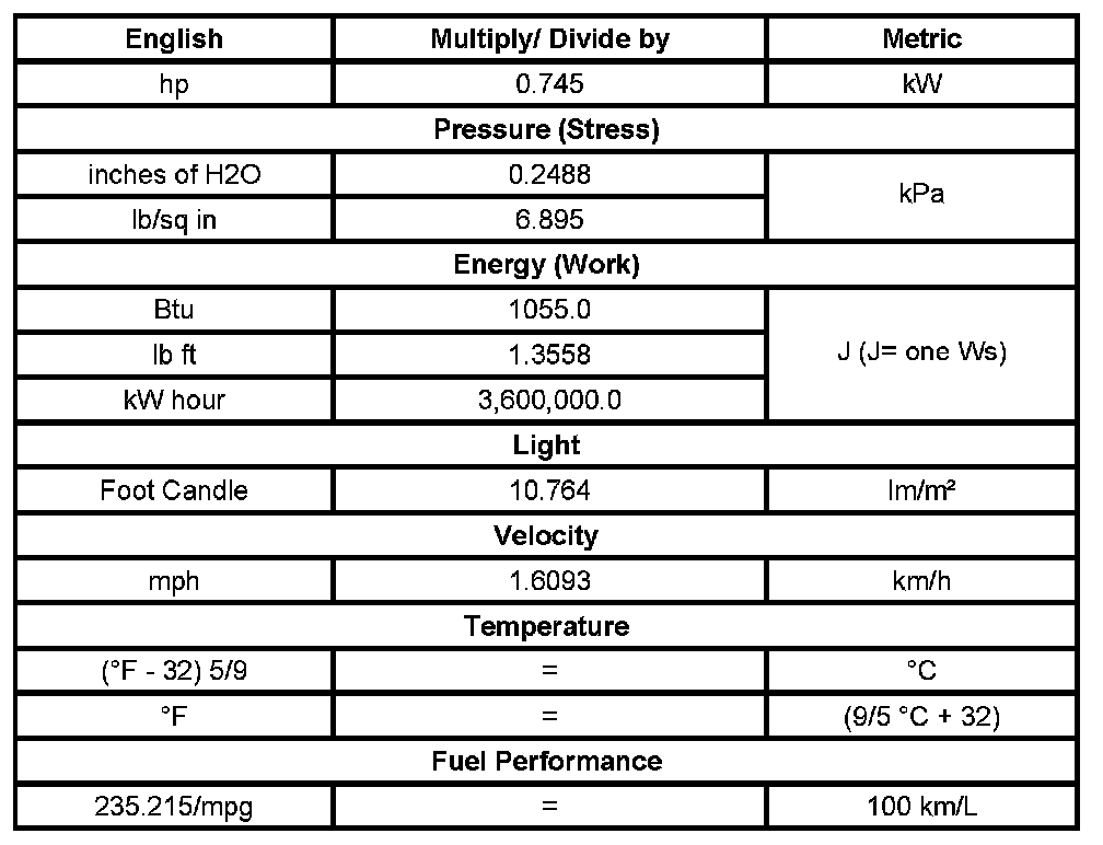US English/Metric Conversion