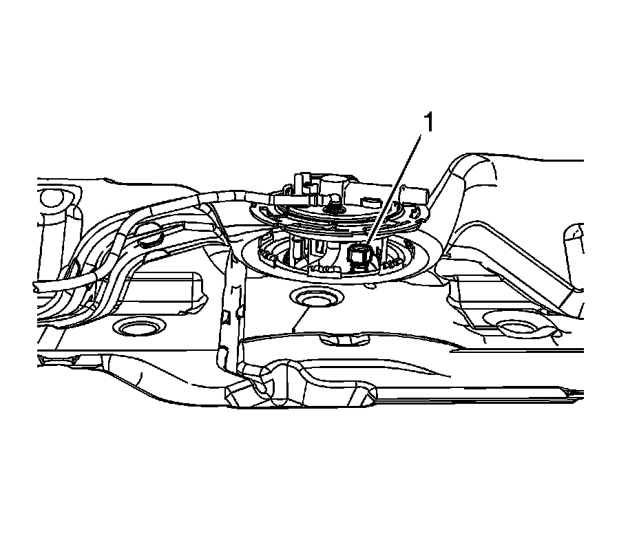 6. Raise the fuel sender assembly out of the tank far enough to access the vapor line quick connect fitting (1) on the underside of the sender cover.