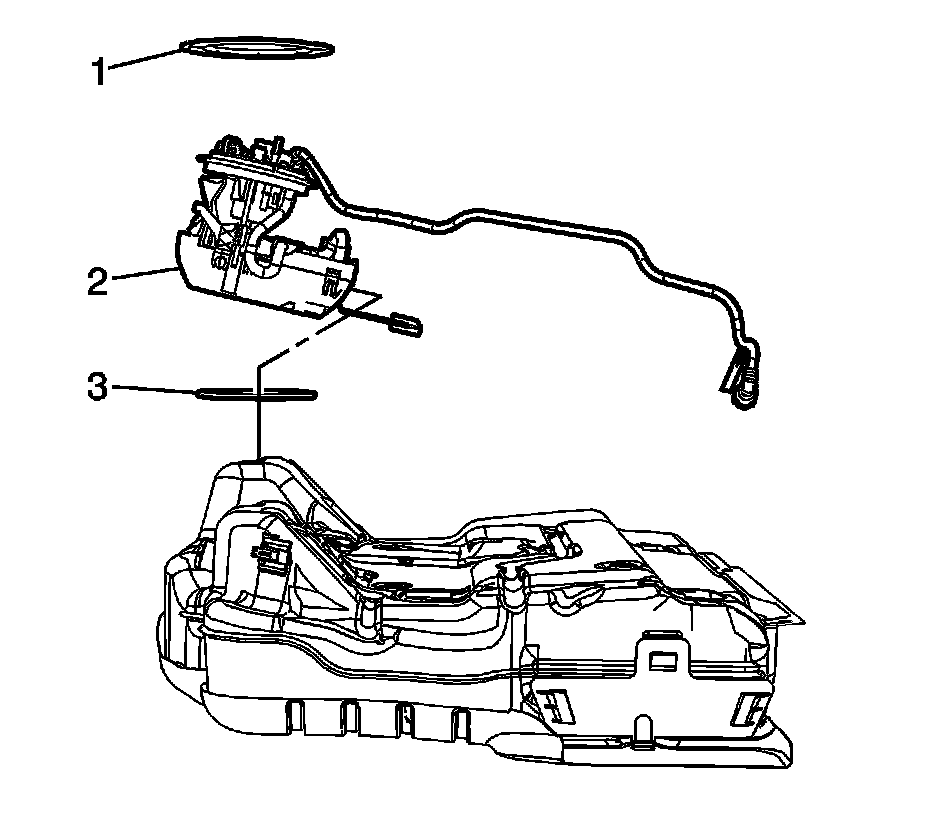 8. Remove the fuel sender assembly (2) from the fuel tank.