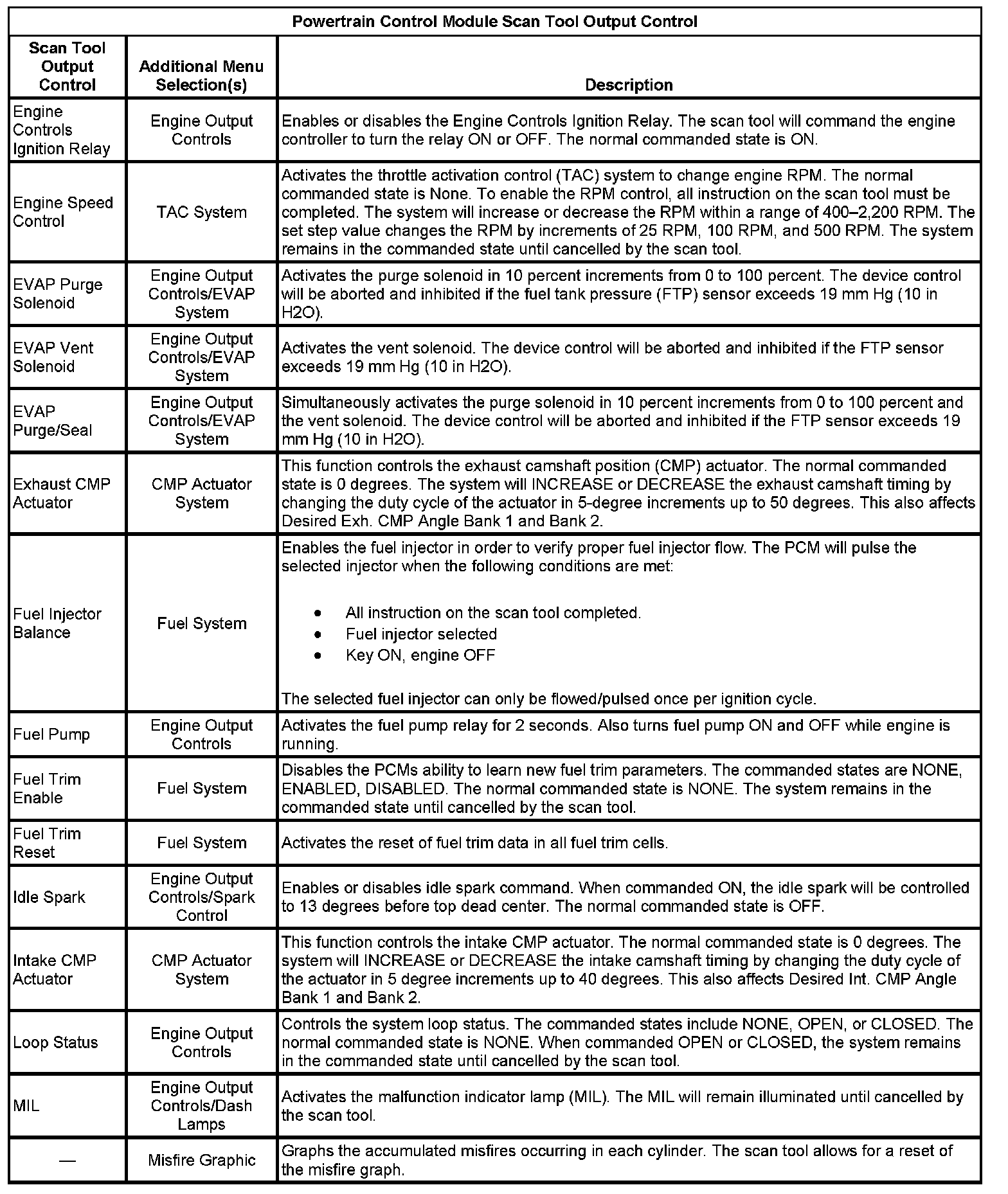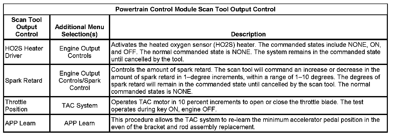 Scan Tool Output Controls