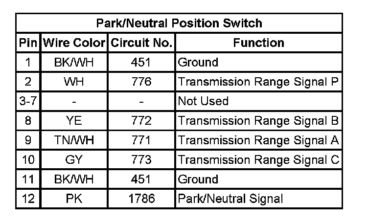 Transmission Position Sensor/Switch: Diagrams